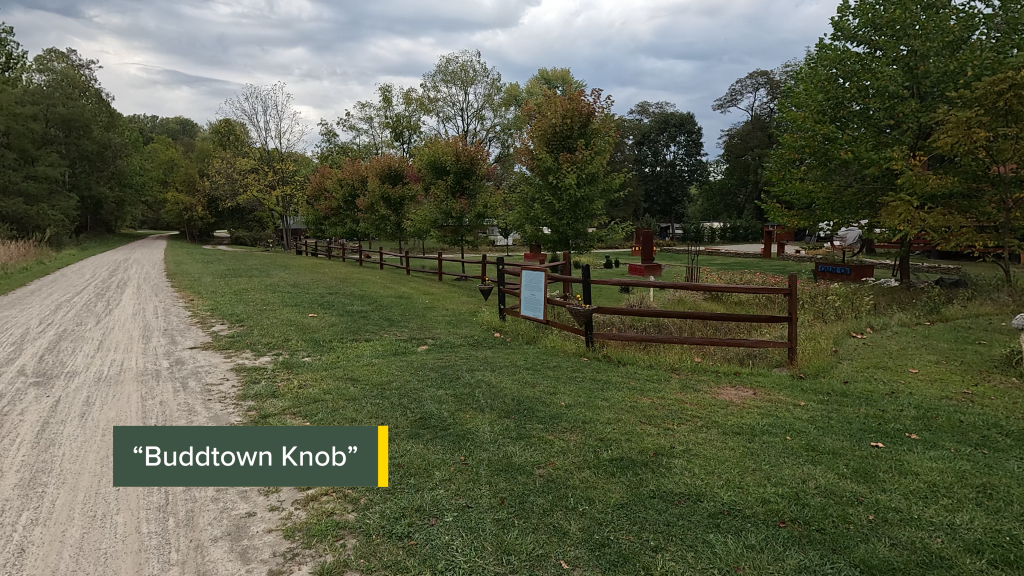 Right after GAP Mile 113, we encounter the area known as Buddtown. The most famous point here is the property and outdoor art exhibit known as the “Buddtown Knob.”
