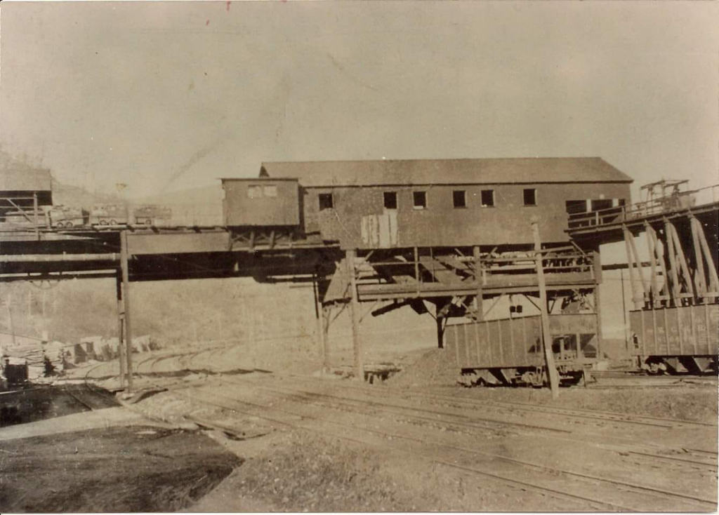 Coal from Banning No. 2 in Whitsett proper was carried via aerial “bucket lines” to Banning No. 1 (a couple of miles north) to be cleaned, while more aerial cable cars carried refuse to gob piles on both sides of the river.