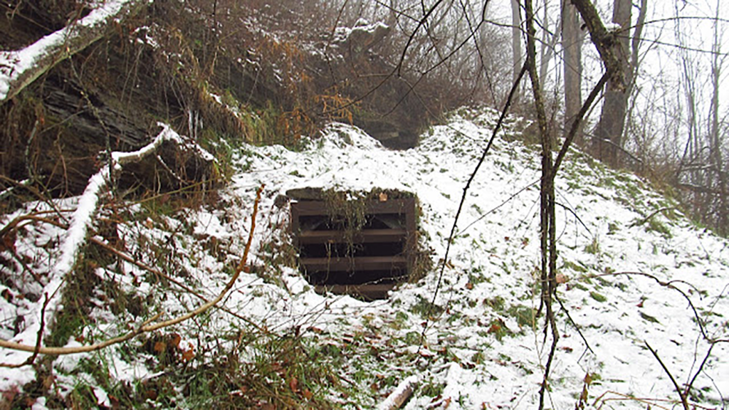 The mine entrance is said to be just beyond this marker. “Coke Oven Mike” has some good pictures of it on his blog.